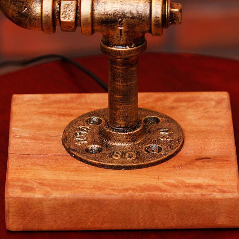 Rustikale Tischlampe aus Schmiedeeisen mit stilvoller offener Glühbirne – Schlafzimmerbeleuchtung in Bronze