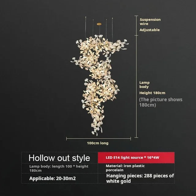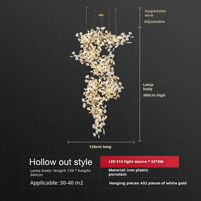 Solayne Ginkgo Leaf Chandelier – Luxury High Ceiling Statement Light C L120 W60 H200cm 1 / acrylic leaves / Warm White