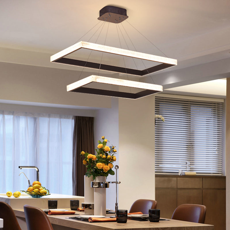 Contemporary Acrylic Rectangle Chandelier Pendant Light - Black Led Hanging