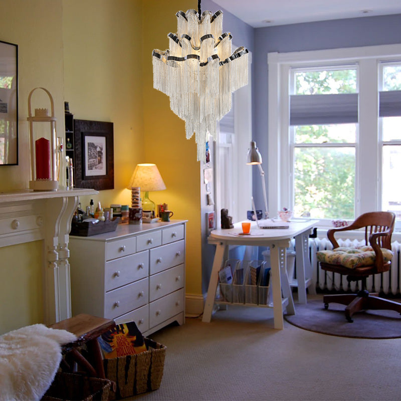 Modernist Nordic Style Metal Silver Chain Chandelier With 8 Lights - Stylish Hanging Ceiling Light