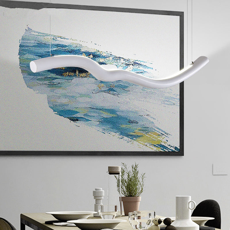 Dieser einzigartige und moderne, geschwungene Schlafzimmer-Kronleuchter bietet ultimativen Stil und Eleganz. Die Konstruktion aus Metallguss ist matt grauweiß und setzt ein Statement in Schlafzimmer und anderen Wohnräumen. Die Leuchte ist 63 cm oder größer, hat eine Länge von 103 cm und eine Breite und Höhe von 7,5 cm bzw. 15 cm.