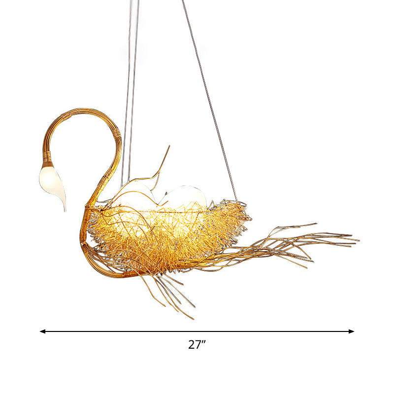 Moderner Kronleuchter in Goldgans-Optik, Eier-Design, 3-flammiger Metallanhänger
