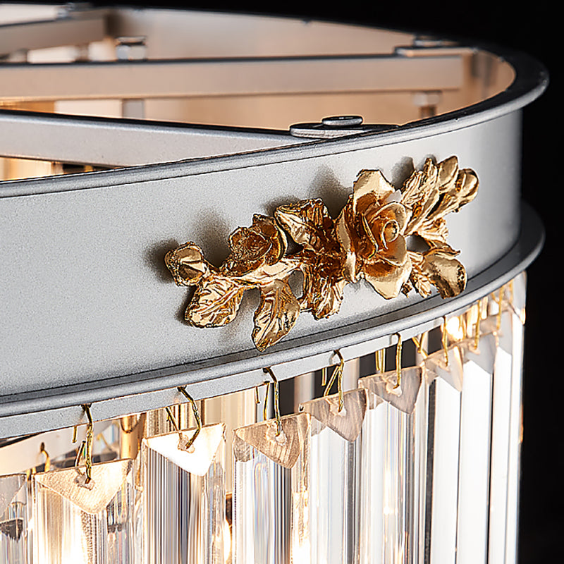 Dieser moderne Trommelleuchter besticht durch sein einzigartiges Design mit rechteckig geschliffenen Kristallen. Er ist je nach Größe mit drei oder vier Leuchten erhältlich und passt perfekt in jedes Esszimmer. Die 40 cm/49,5 cm breite Leuchte besteht aus hochwertigem Kristall und ist in Silber erhältlich. Sie verwendet E12/E14-Glühbirnen (nicht im Lieferumfang enthalten) und ist mit LED-, Glüh- und Leuchtstofflampen kompatibel.