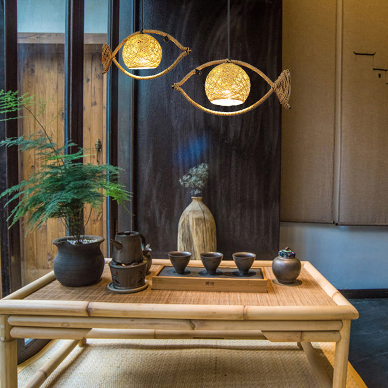Rustic Beige Fish Shaped Pendant Light - 1/2/3-Light Bine Hanging Lamp