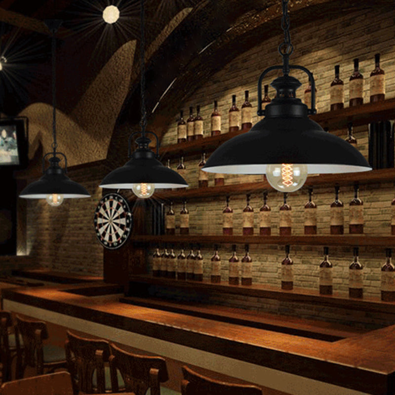 Vintage Metal Pendant Lamp With Hanging Handle - Black Outer White Inner & / 12.5