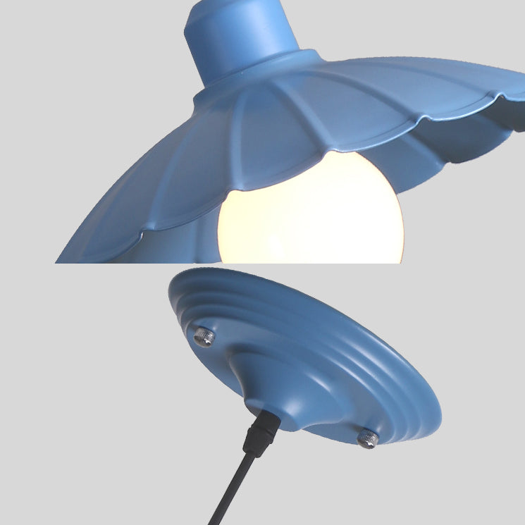 Macaron Style Scalloped Edge Metallic Hanging Lamp - Pink/Yellow For Living Room Light Blue