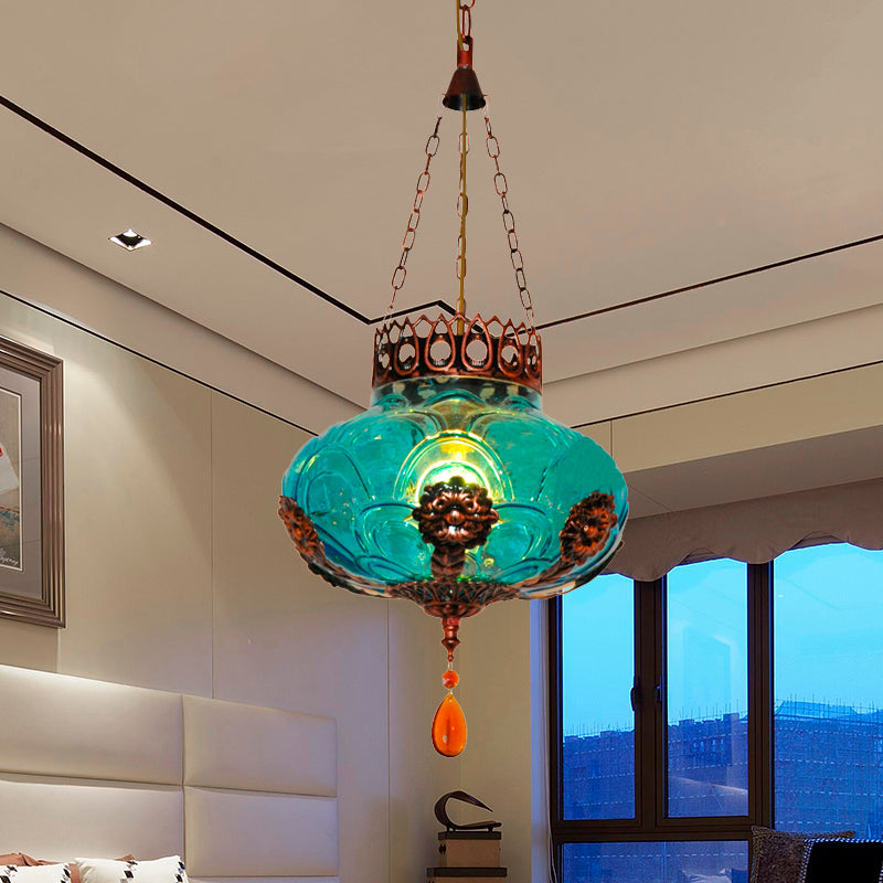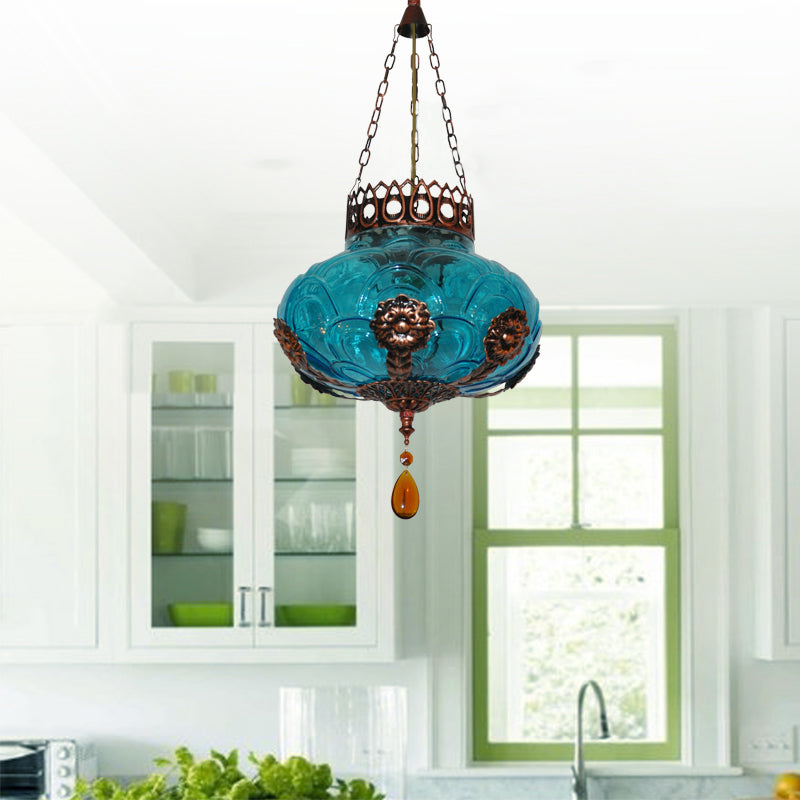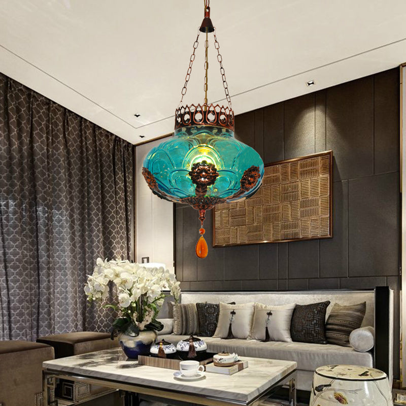 Moroccan Blue Glass Pendant Light For Dining Room Suspension Lamp