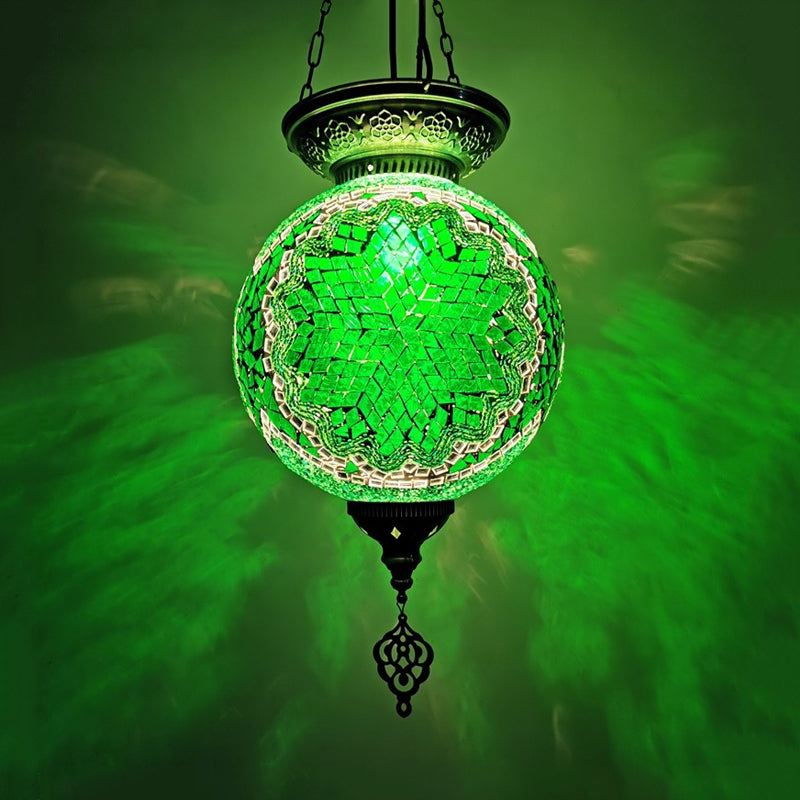 Dieses schöne und moderne 1-flammige Pendelleuchtenset aus Buntglas ist die perfekte Ergänzung für jedes Esszimmer. Sein eleganter Art-déco-Stil ist garantiert ein Blickfang. Dieses Leuchtenset ist in verschiedenen Größen von 25,4–35,6 cm erhältlich. Die Leuchte hat eine Höhe von 25,4 cm und ist 30,5 cm hoch, was ihr sowohl innerhalb als auch außerhalb des Hauses eine beeindruckende Präsenz verleiht. Dank ihres auffälligen Kugeldesigns und der brillanten Farben Weiß, Blau, Rot und Grün eignet sich diese Leuchte perfekt für jede Art von Zusammenkunft. Sie verfügt über eine Leuchte und eine Leuchte mit Schirm. Das Beeindruckendste sind die Spannungen 110–120 V und 220–240 V für diese Leuchte. Darüber hinaus können Sie die Leuchte individuell anpassen und zwischen den Sockeln E12/E14 und allen Arten von Glühbirnen (LED, Leuchtstoffröhre oder Glühlampe) wählen. Und schließlich ist die Leuchte mit der Stromstärke in jedem Haushalt kompatibel. Sie können sie mit der sicheren Halterung an jeder geeigneten Oberfläche aufhängen. Mit diesem Pendelleuchten-Set aus Buntglas mit einer Leuchte müssen Sie modernen und klassischen Stil nicht miteinander vereinen.