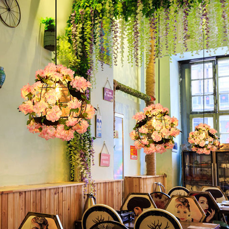 Industrial Led Drop Lamp Pendant - Metal Black Orb 12’/16’ Diameter 1 Head Cherry Blossom Design