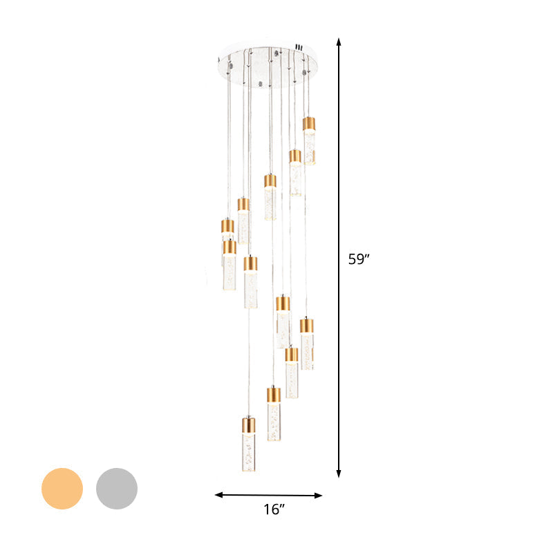 Modernist Gold/Silver Tube Stair Pendant Light With Spiral Design - 12 Heads