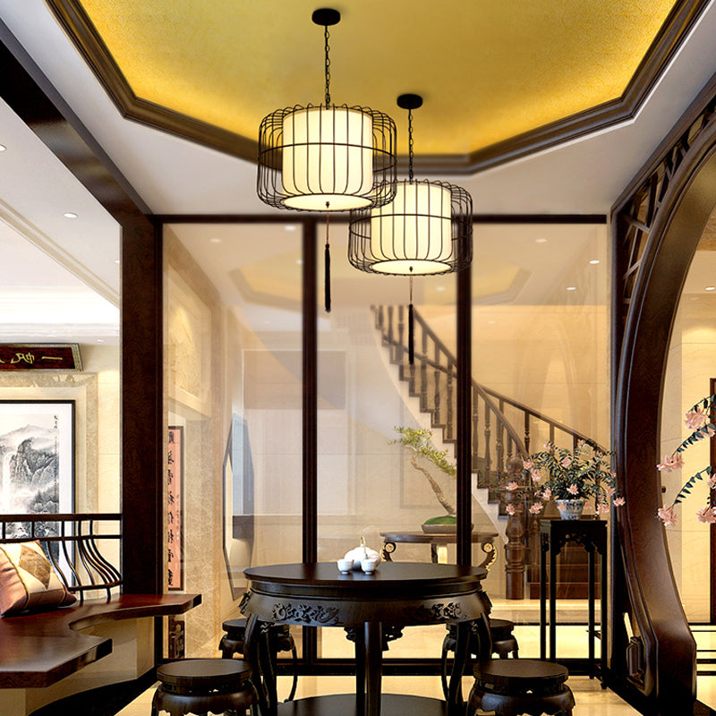 16/19.5 Wide Black Fabric Hanging Pendant Lantern - Traditional Stylish Down Lighting
