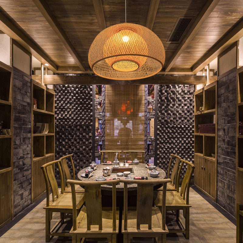 Tea Room Bamboo Pendant Light: Asian Style Dome Ceiling Lamp In Wood