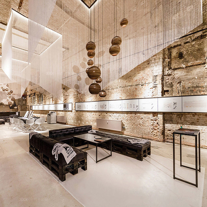Asiatische stilvolle Pendelleuchte aus braunem Wellpapier mit Trommelform und Kugeldesign - 1-flammige Pendelleuchte für den Innenbereich