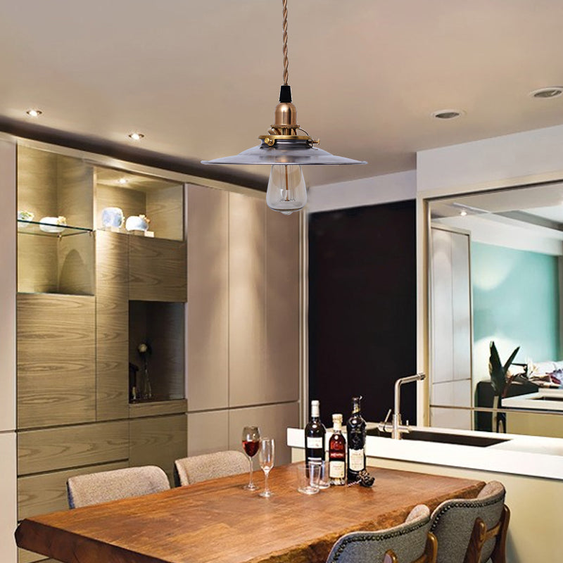 Industrial Metal Farmhouse Pendant Light With Brass Finish And Hanging Cord