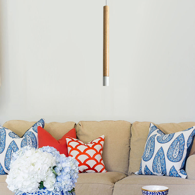 Contemporary Wooden Flute Pendant Lighting In Black/White: 1-Light Ceiling Fixture