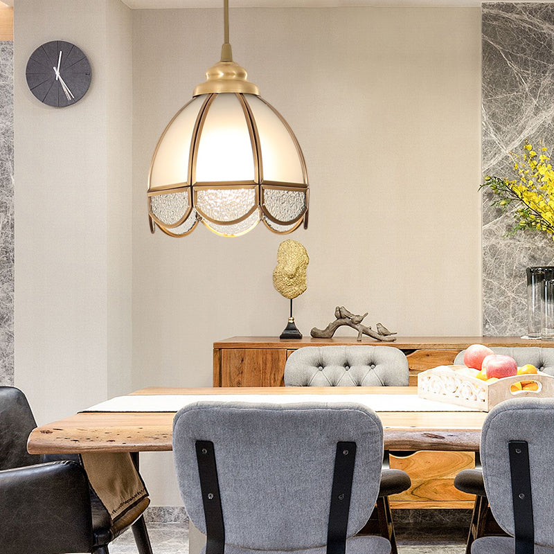 Traditional Frosted Glass Hanging Lamp Kit In Brass - 1 Light Pendant For Dining Room