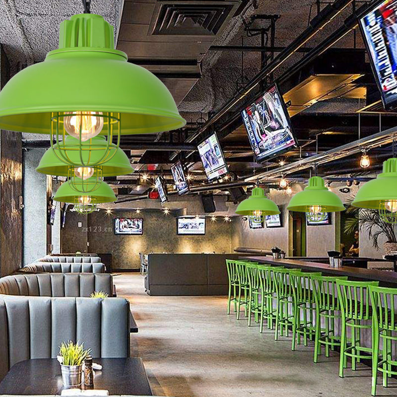 Metal Pendant Light With Cage Guard For Commercial Settings Green