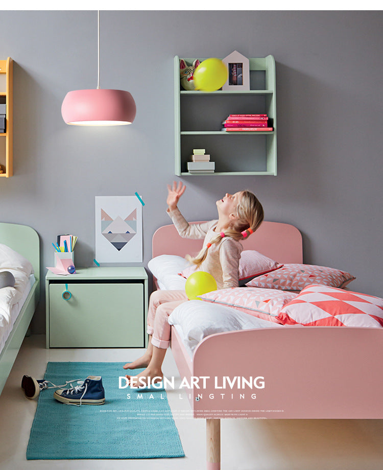 Contemporary Metal Drum Pendant Light For Dining Room Ceilings Pink