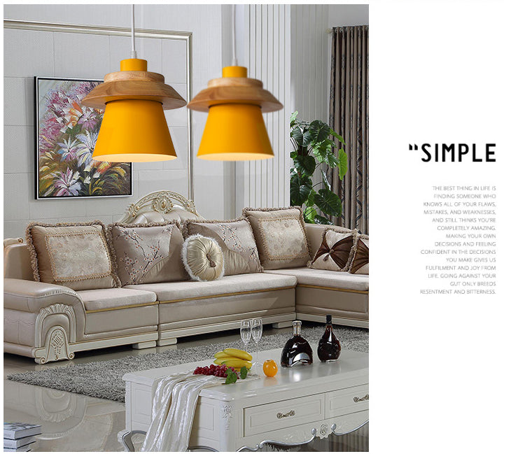 Minimalist Metal & Wooden Pendant Light Fixture For Dining Room - Down Lighting Yellow