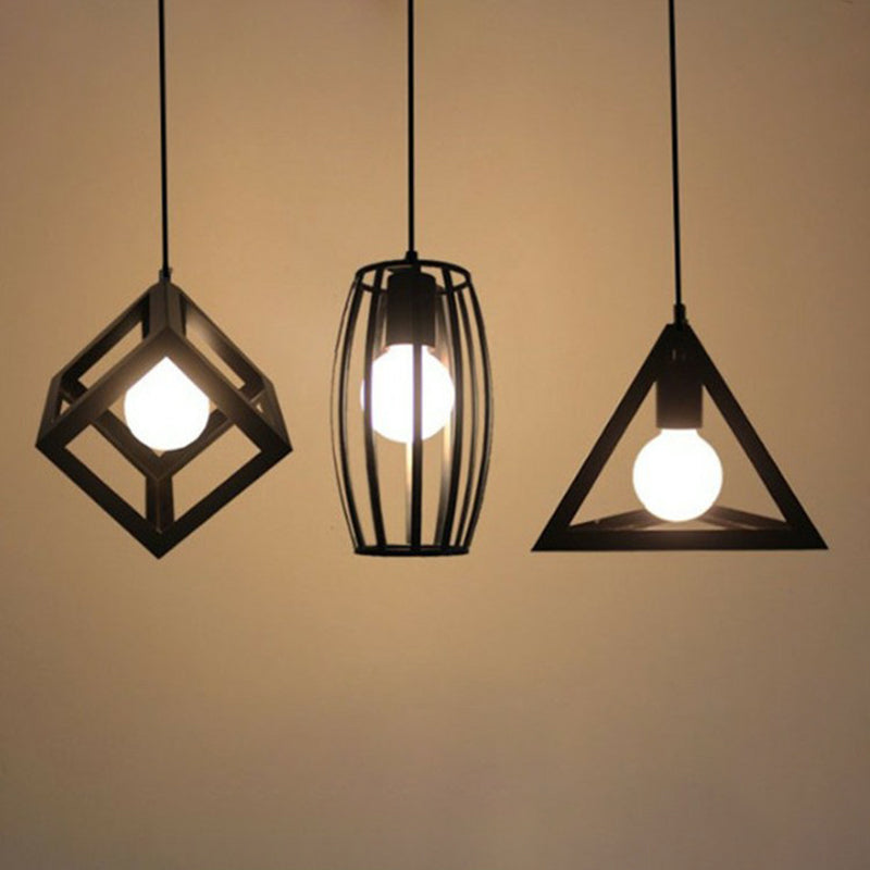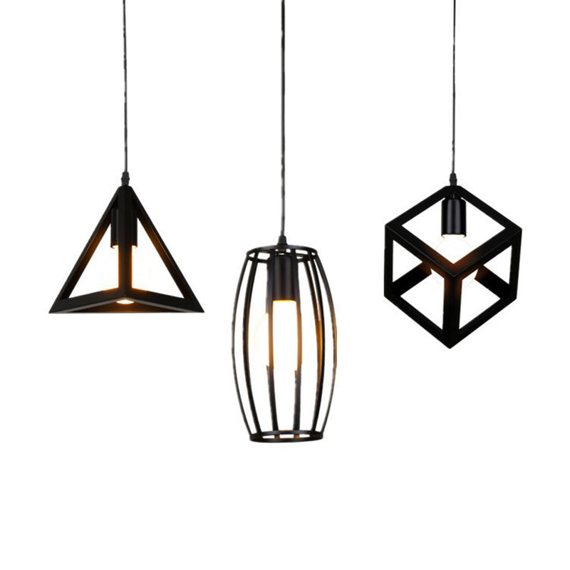 Black Vintage Geometric Pendant Ceiling Light - Single Bulb Metal Lamp / C