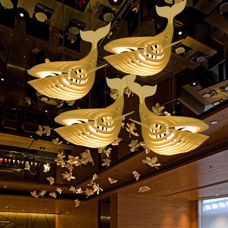 Wooden Kids Whale Pendant Lamp - Modern Hanging Light In Beige 21.5’/31.5’/39’ Wide