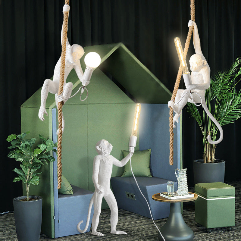 Modern 1-Head Resin Monkey Pendant Light White/Black/Gold Decorative Hanging Ceiling For Restaurants