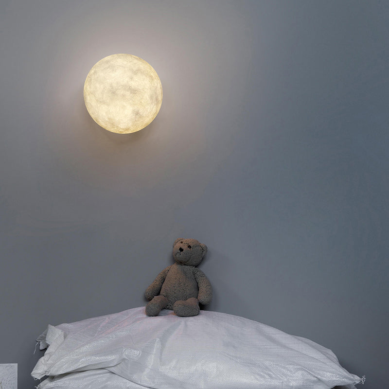 Art Deco LED-Wandleuchte: Weiße Mond-Wandleuchte mit Harzschirm