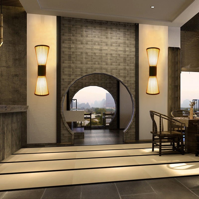 Bambus-Sanduhr-Wandleuchte – Moderne Wandleuchte mit 2 Glühbirnen in Bronze für das Wohnzimmer