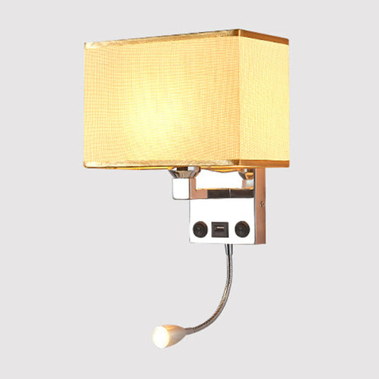 Modern Cuboid Wall Lamp With Usb Port Spotlight And Fabric Shade (Black/White/Flaxen) Flaxen