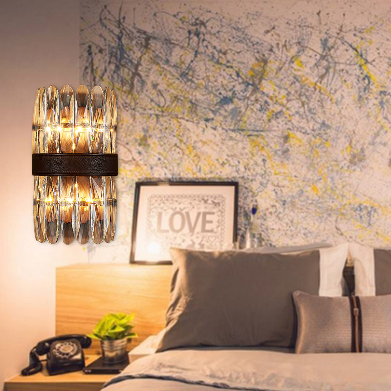 Modern Crystal Wall Sconce Light - Black Cylinder Block Fixture (2/4 Lights)