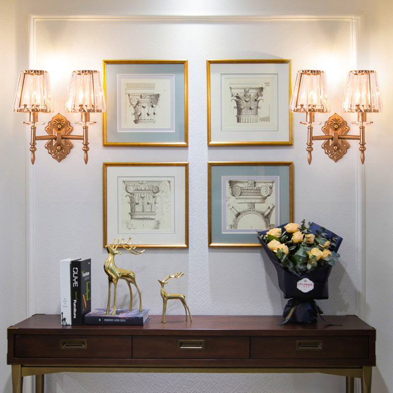 Copper Modern 1/2-Light Crystal Wall Sconce With Cone Shade For Bedroom