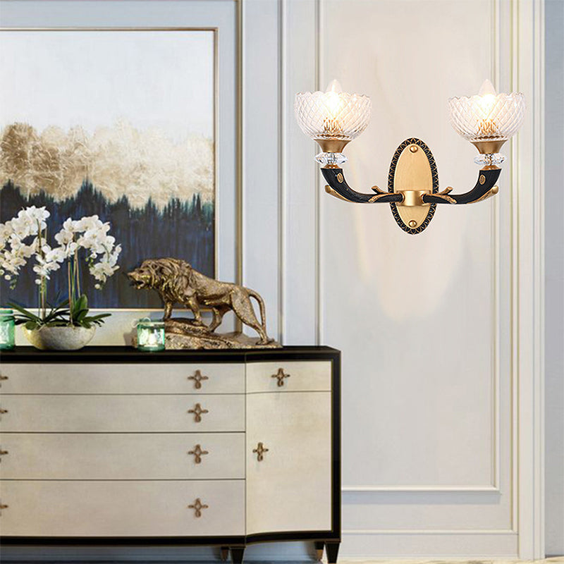 Modern 2-Light Metal Black Sconce With Clear Prismatic Glass Shade - Wall Mounted
