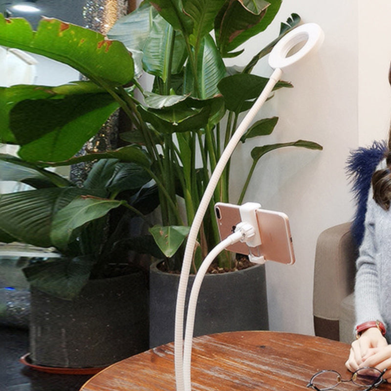 Schlanke, runde USB-Spiegellampe aus Metall mit tragbarer LED-Füllbeleuchtung und flexiblem Arm, schlichtes Schwarz/Weiß-Finish