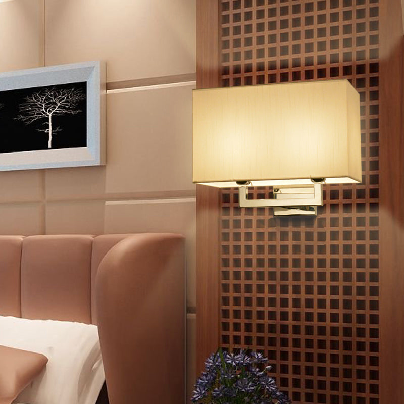 Moderne, rechteckige Wandleuchte aus Stoff mit 2 Lichtern, Chrom