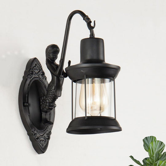 Wandleuchte aus klarem Glas mit Meerjungfrau-Dekoration – Industrielle schwarze Laterne für Außenbeleuchtung