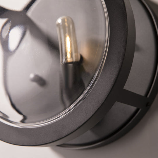 Moderne, runde Wandleuchte in Schwarz mit Akzent aus klarem Kristall – Stilvolle 1-flammige Metallleuchte für den Flur
