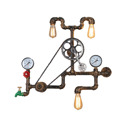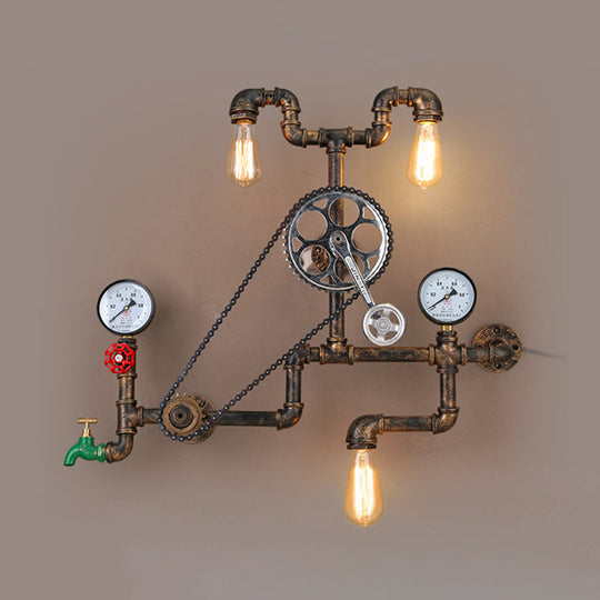 Moderne Cyberpunk-Wandleuchte aus Eisen mit 3 Lichtern – Bronze-Wasserhahn-Rohrketten-Design für die Garage