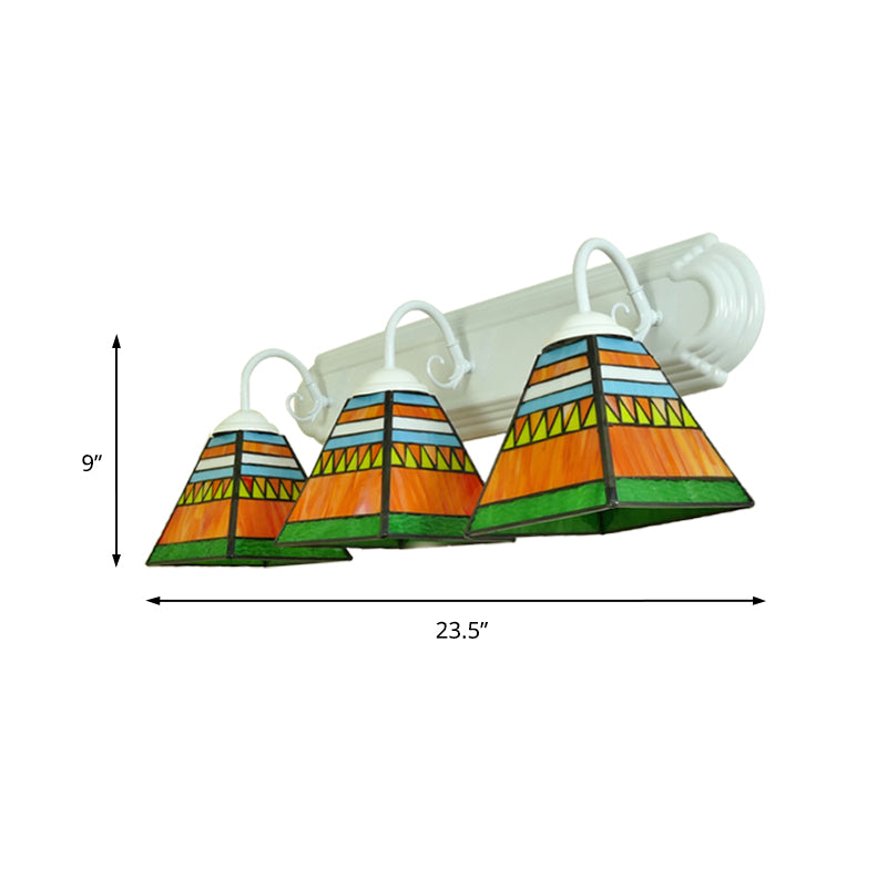 Mission Style Stained Glass Pyramid Wall Mount Light With 3 Lights - Pink/Orange/Blue Orange
