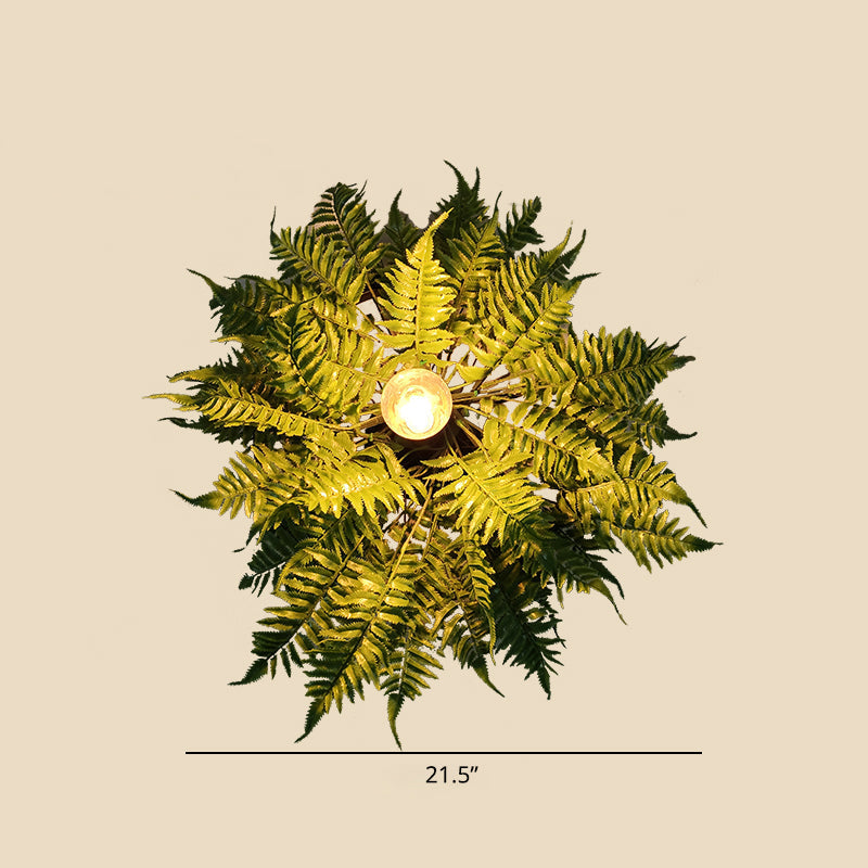 Industrial Metal Wall Mounted Lamp With Artificial Plant Décor - Single Wagon Wheel Light Green