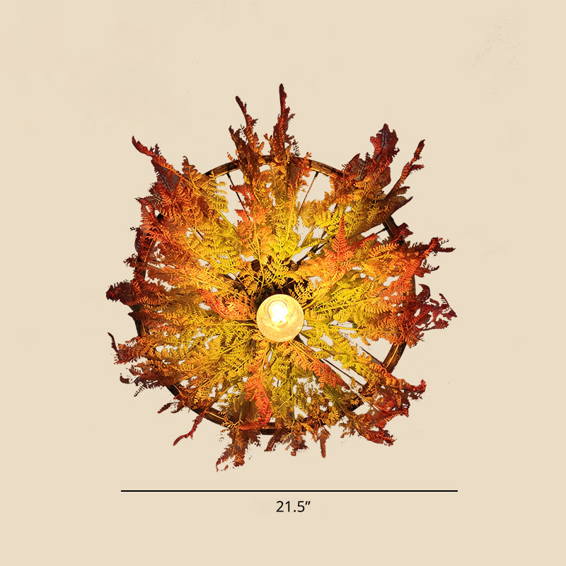 Industrial Metal Wall Mounted Lamp With Artificial Plant Décor - Single Wagon Wheel Light Green-Red