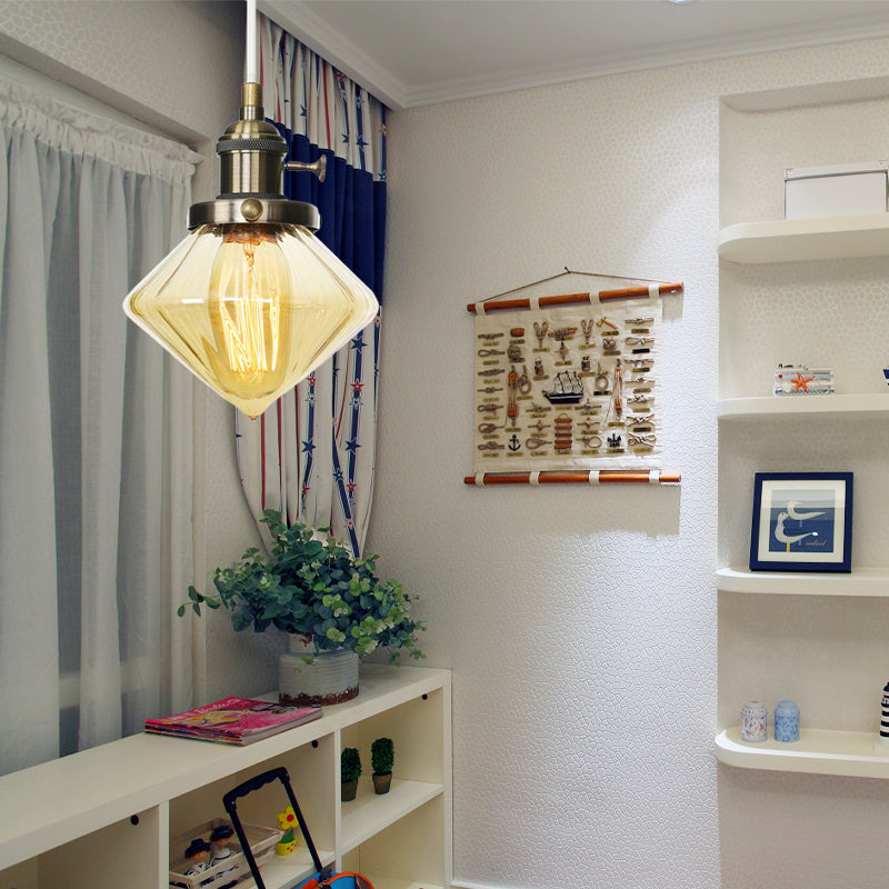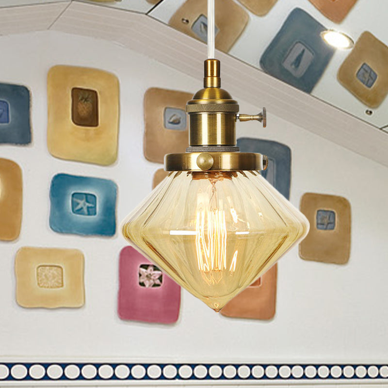 Adjustable Height Industrial Pendant Light With Diamond Glass Shade - Black/Bronze/Brass Finish