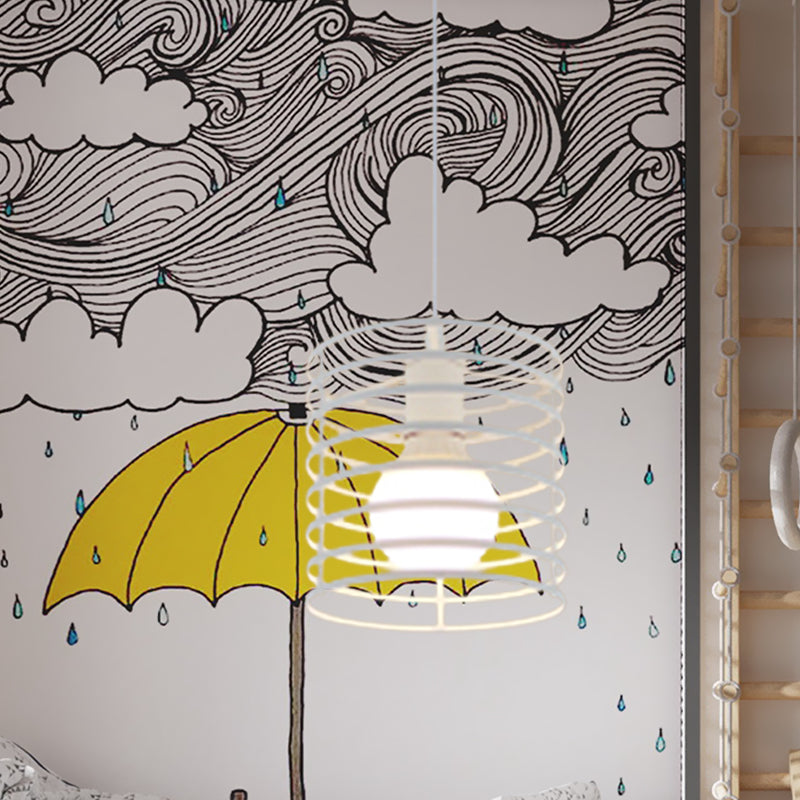 Retro Style Black/White Cylinder Cage Pendant Ceiling Lamp - Adjustable Height Indoor Metal Hanging