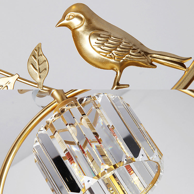 Vintage Style Clear Crystal Drum Ceiling Light With Bird Accent And 1 Bulb In Black/Gold Gold