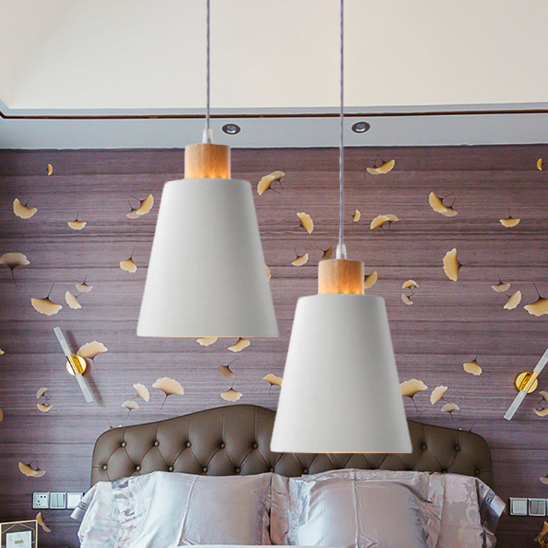 Moderne Pendelleuchte mit Eimerschirm – Hängeleuchte mit Metallic-Weiß-Finish für den Flur mit Baldachin