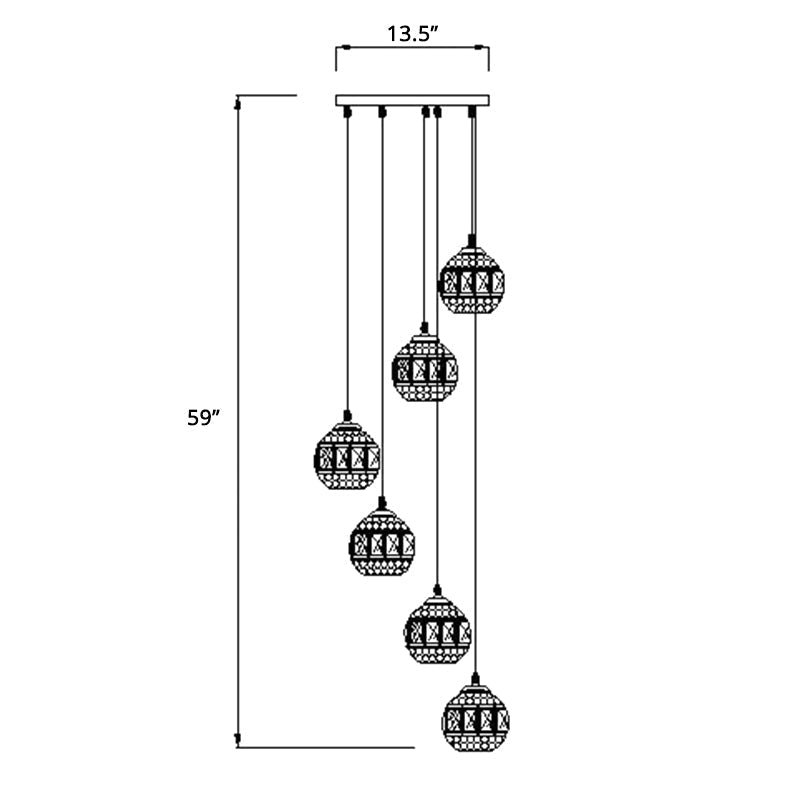 Gold Crystal Encrusted Sphere Pendant – Modern Style Ceiling Hanging Lantern For Staircase 6 /