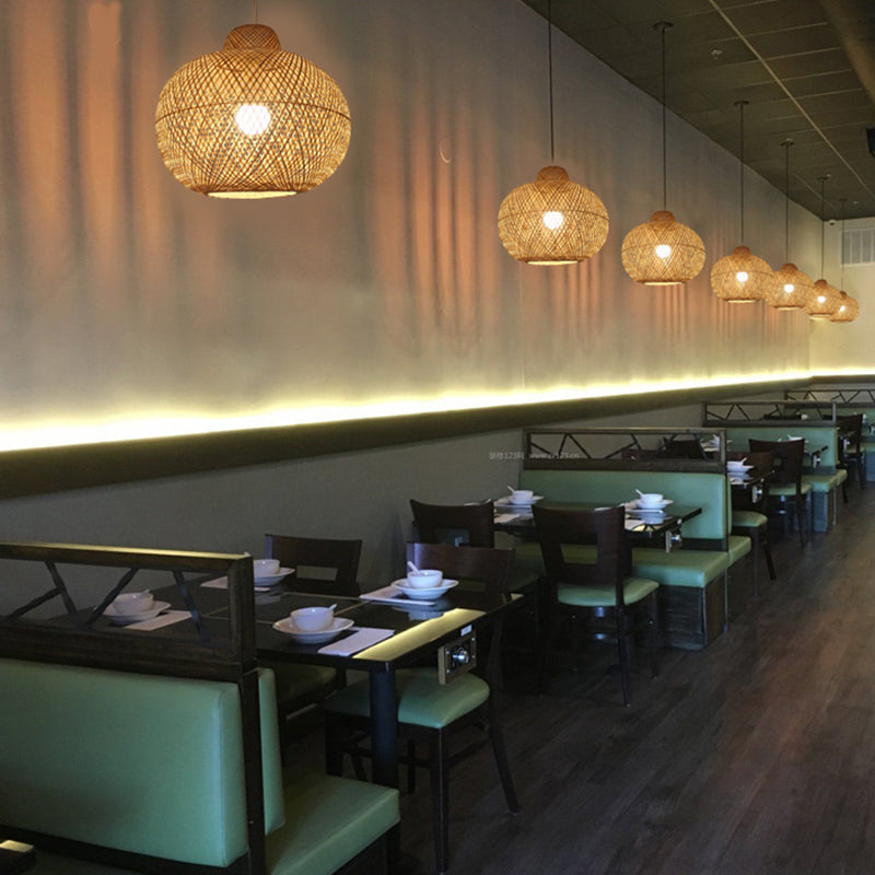 Contemporary Bamboo Globe Pendant Light Kit - Wood Hanging 12/14 Wide / 12
