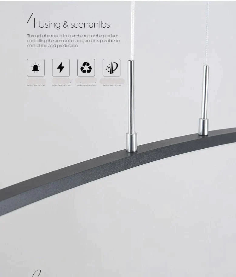Wir präsentieren unsere atemberaubenden LED-Pendelleuchten in Bogenform – die perfekte Ergänzung, um die Atmosphäre Ihres Esszimmers aufzuwerten. Mit ihrem schlanken und modernen Design setzen diese Pendelleuchten in jedem Raum ein Statement.