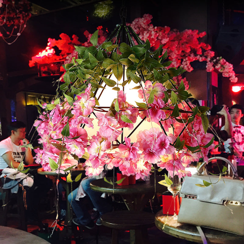 Vintage Diamond Pendant Light: Metal Flower Black Fixture 23.5 Wide