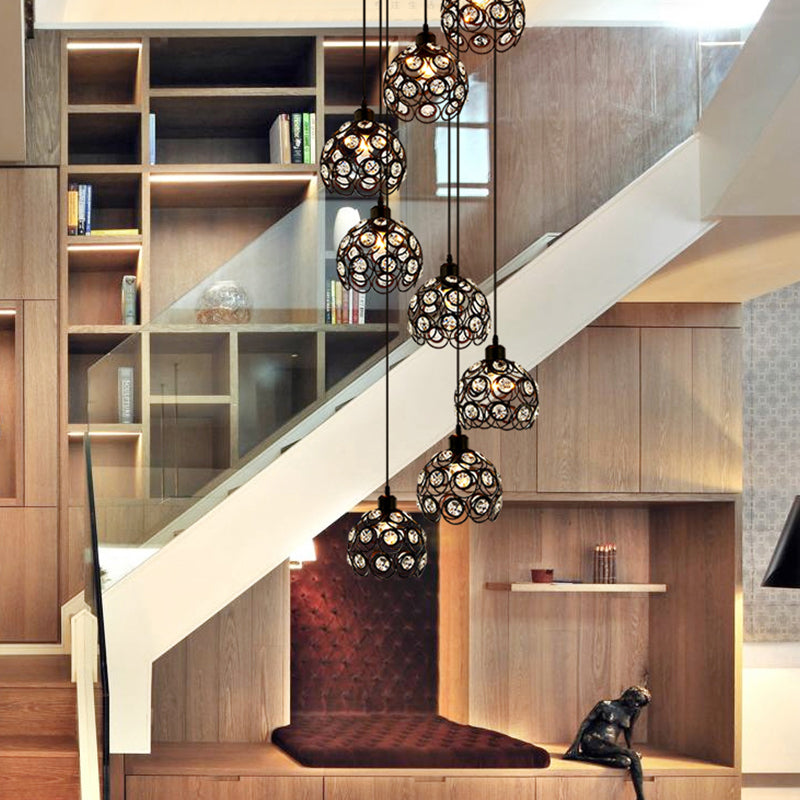Modern Crystal Dome Chandelier White/Black 8-Bulb Ceiling Light For Living Room Black