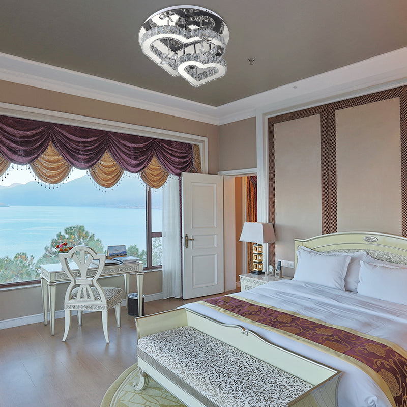 Modernes LED-Halbdeckenlicht in Herzform, Kristallglas, 49,5 cm/59,4 cm, klares warmweißes Licht, Chromhalterung